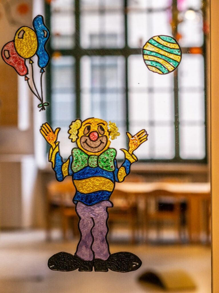 Auf einem Plan im Eingangsbereich können sich die Eltern über die Tagesaktivitäten der Kinder und den Speiseplan (Bio-Kost der Fa. „Apetito“) informieren.